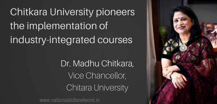 We are pleased to connect with Dr. Madhu Chitkara, Vice Chancellor, Chitkara University to understand the pioneering efforts of the university in offering job-oriented courses with high employability. In this Skill Talk, Dr Madhu Chitkara talks about the need to integrate curriculum with industry requirements. She emphasizes on making employability and entrepreneurship to be the focus of education. She also discusses the rising trend of more women taking up unconventional courses across diverse industry segments lending themselves into self-sufficient entrepreneurs. Let’s read on to know more about how work-integrated learning models and apprenticeships could be operationalized in educational institutes paving way for Skilled India.