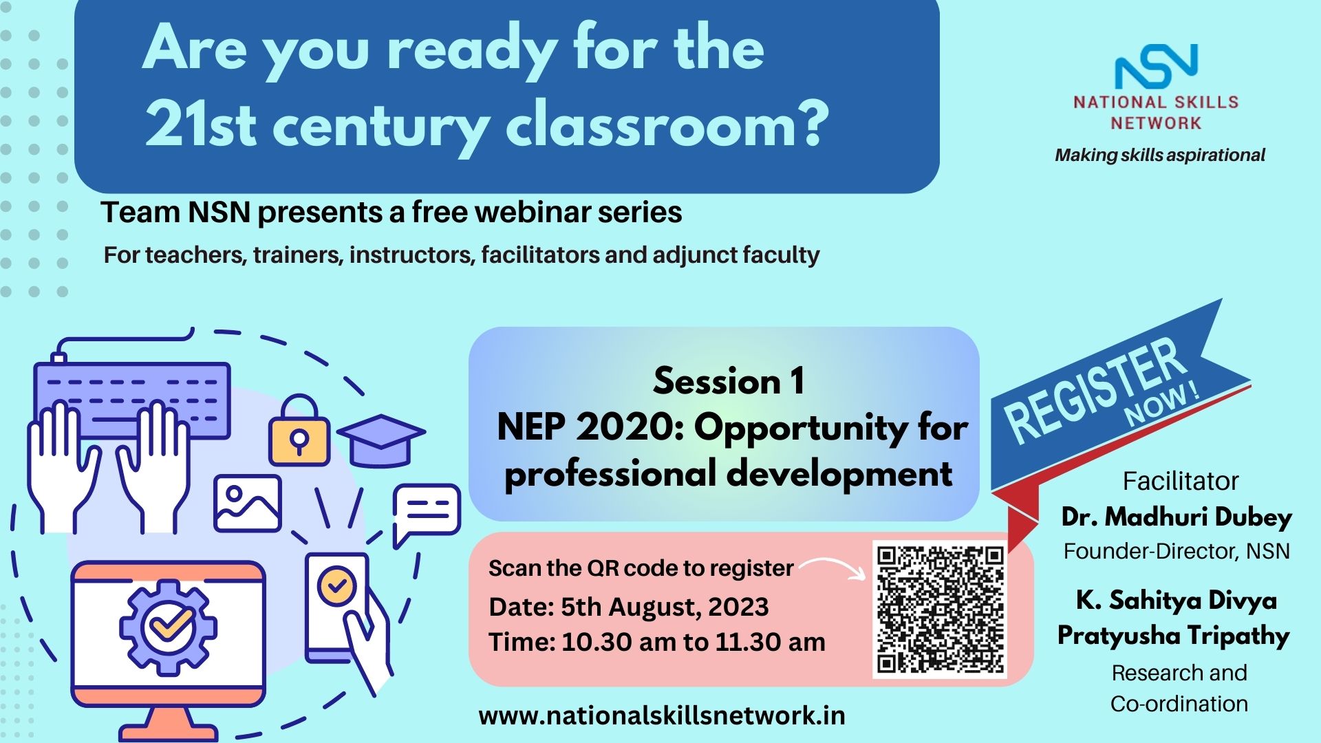 To register for the webinar, please click on the link: https://nationalskillsnetwork.in/oldsite/nsn-webinar-series-are-you-ready-for-the-21st-century-classroom-2/