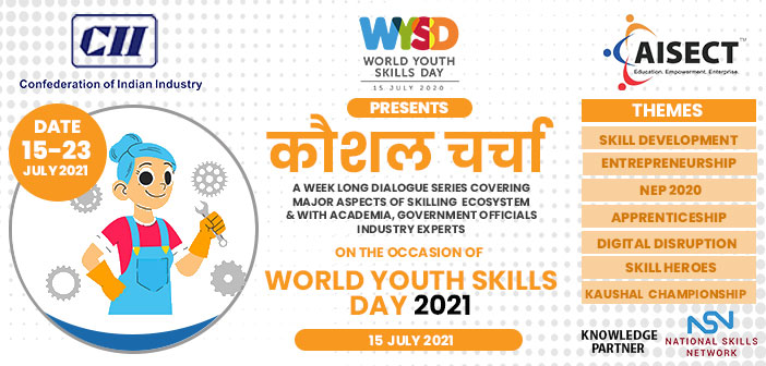 You are invited to a week long virtual event “Kaushal Charcha” on the occasion of World Youth Skill Day – 2021 organized by AISECT in association with CII and NSN.
