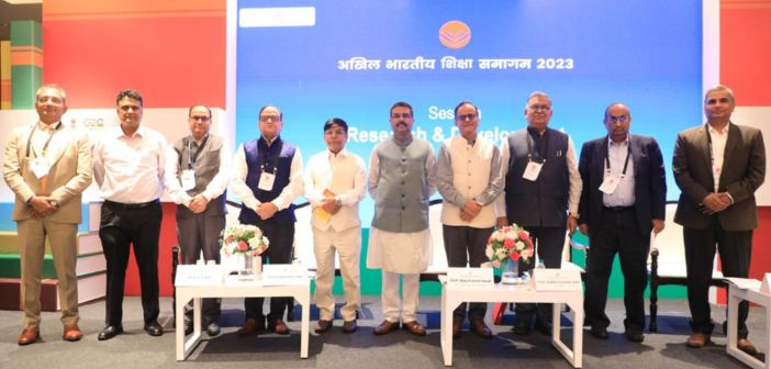 Akhil Bhartiya Shiksha Samagam 2023, coinciding with the 3rd anniversary of National Education Policy (NEP) 2020, concluded with a resolute commitment from education leaders to transform India into an equitable and vibrant knowledge society. The valedictory address was delivered by Shri Dharmendra Pradhan, the Union Minister of Education and Skill Development and Entrepreneurship Government of India, who was the chief guest of the event on 29th July 2023.