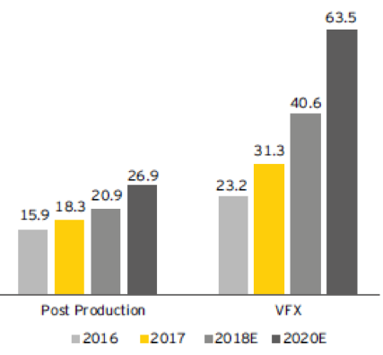 - Increase in content commissioned by digital platforms (Amazon and Netflix have commissioned exclusive digital shows in India, which has boosted demand for digital content with high-quality VFX)